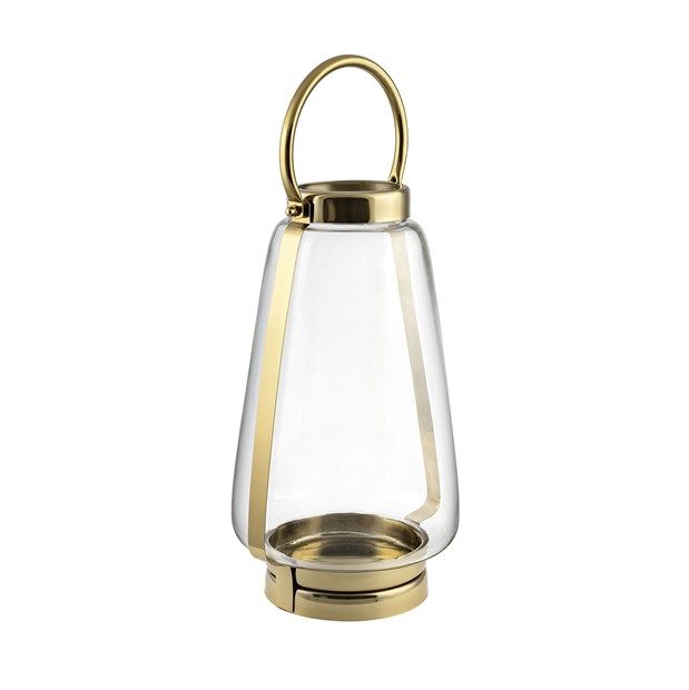 LANTERNA PORTACAND.VETRO/ACCIAIO ORO